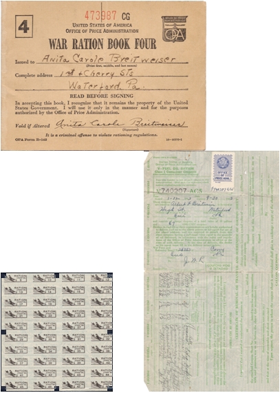 Scenario 1: Scenario 2: Scenario 3: Scenario 4: Scenario 5: Scenario 6: Scenario 7: Scenario 8: By Anita Breitweiser Palmer FLBHS Class of 1962 Part I of III I don't remember much about winters at the up town house. I pretty much lived for the summers at the lake. My earliest memories of living up town were standing at the window in the living room after a snow storm watching Mr. Ishman plow the sidewalks with a wooden V shaped plow which he stood on and was pulled by a very large brown horse. I just loved seeing that horse. I would run to all the windows to watch until they were out of sight. Also, sometime back in the late 40's, I remember an old ragged woman that walked around town with a push cart collecting rags. She had a little spiel that she repeated over and over as she walked. My grandma would cut up rags to give her. I don't know if she sold them to her or just gave them to her. I was raised on Pet canned milk, as most babies were at that time. They didn't have the specialty baby formulas they have today. Since I was born during the war, and after the attack on Pearl Harbor Dec. 7, 1941 (rationing began May of 1942) my formula milk was rationed, along with sugar, flour, coffee and gas for cars; naming the most important items. Only four gallons of gas for cars could be had per week. Each member of the household received a War ration book for what was needed. They could only use the amount in the book. ![]() For automobile fuel When the booklet was empty of stamps you couldn't get anymore of that particular item, until you were allotted the next booklet. ![]() OPA coins were used for change; red for meats and fats, blue for processed foods Does anyone remember the army tank? It was about 1954 or 1955, I think I was in the forth or fifth grade, there was a huge blizzard and some farms had babies due. The storm was so bad that year and lasted so long that Doc Meloro had an old WW II Sherman tank brought out to Waterford to take him to the farms that were snowed-in. Even the tank got stuck.
